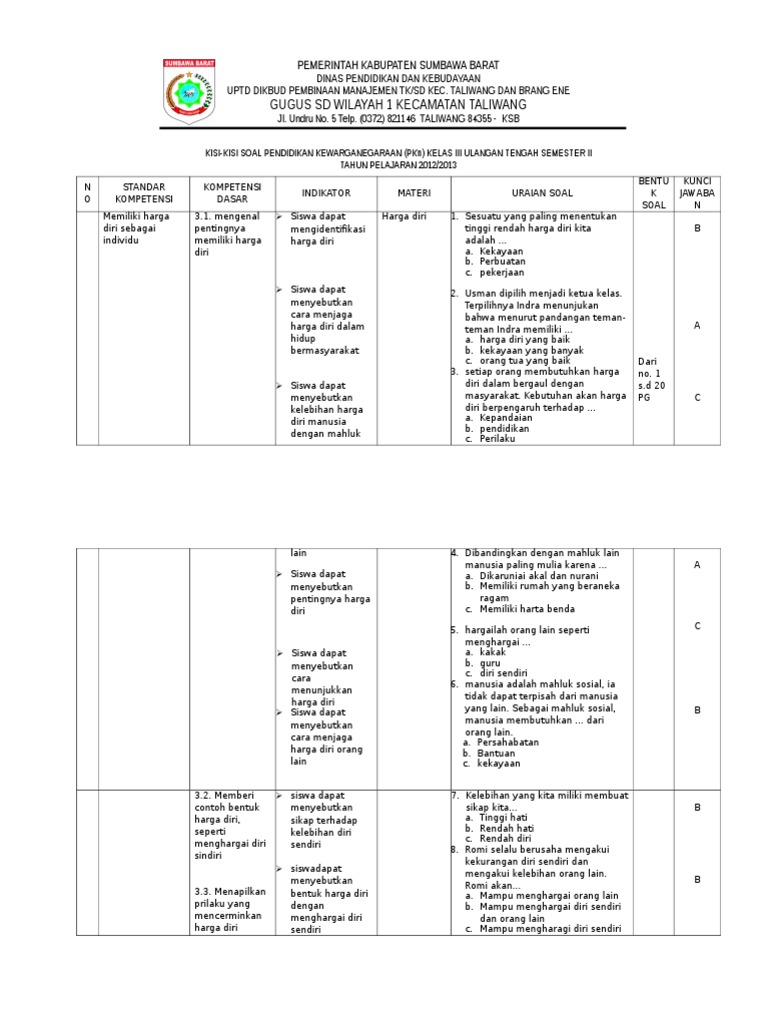 Kisi Kisi Soal Ulangan Harian Mata Pelajaran Pkn Kelas 6 Semester 1 Juragan Soal Ulangan Kurikulum 2013 Dan Ktsp Pendidikan Sekolah Dasar Sekolah