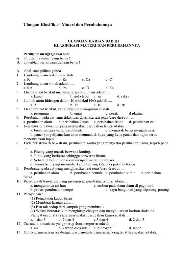 Klasifikasi Materi Unsur Senyawa Campuran Homogen Campuran Heterogen Pelajaran Ipa Smp Mts Kelas Vii