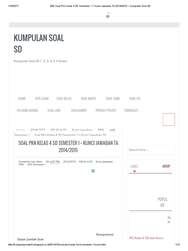 Soal Dan Kunci Jawaban Uas Pas Ips Kelas 4 Semester 1 Gasal Serba Serbi Guru Matematika Kelas 8 Matematika Kelas 5 Matematika Kelas 4