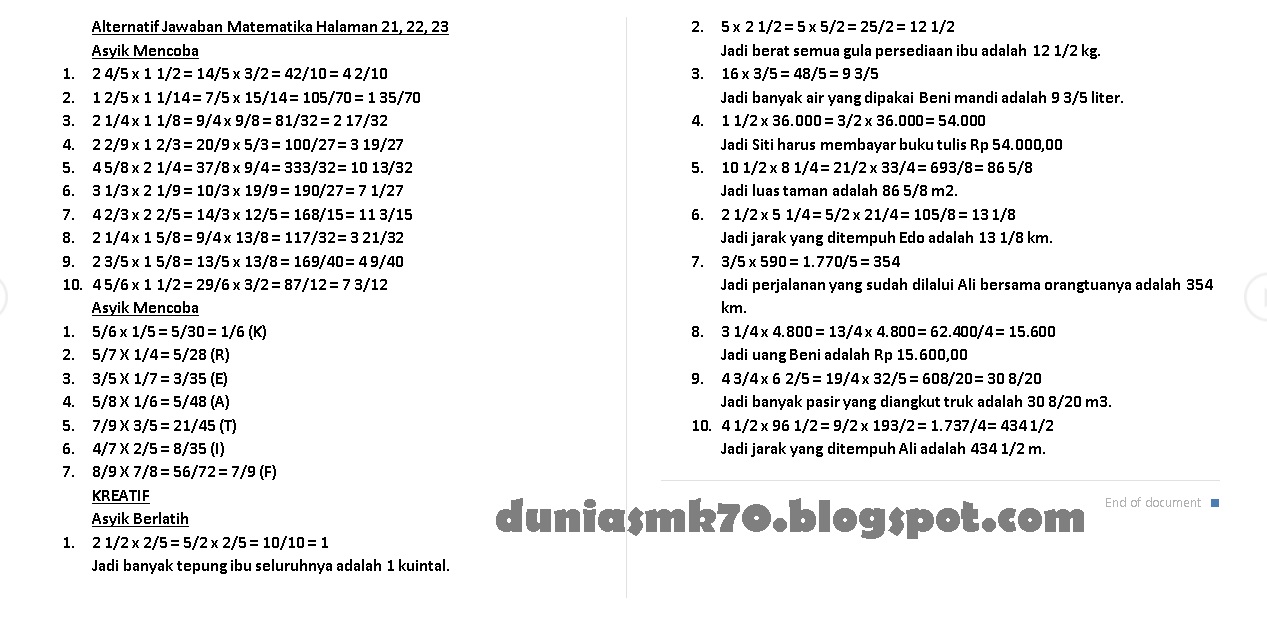 Kunci Jawaban Matematika Kelas 5 Halaman 33 Soal Cerita Perkalian Dan Pembagian Pecahan Youtube