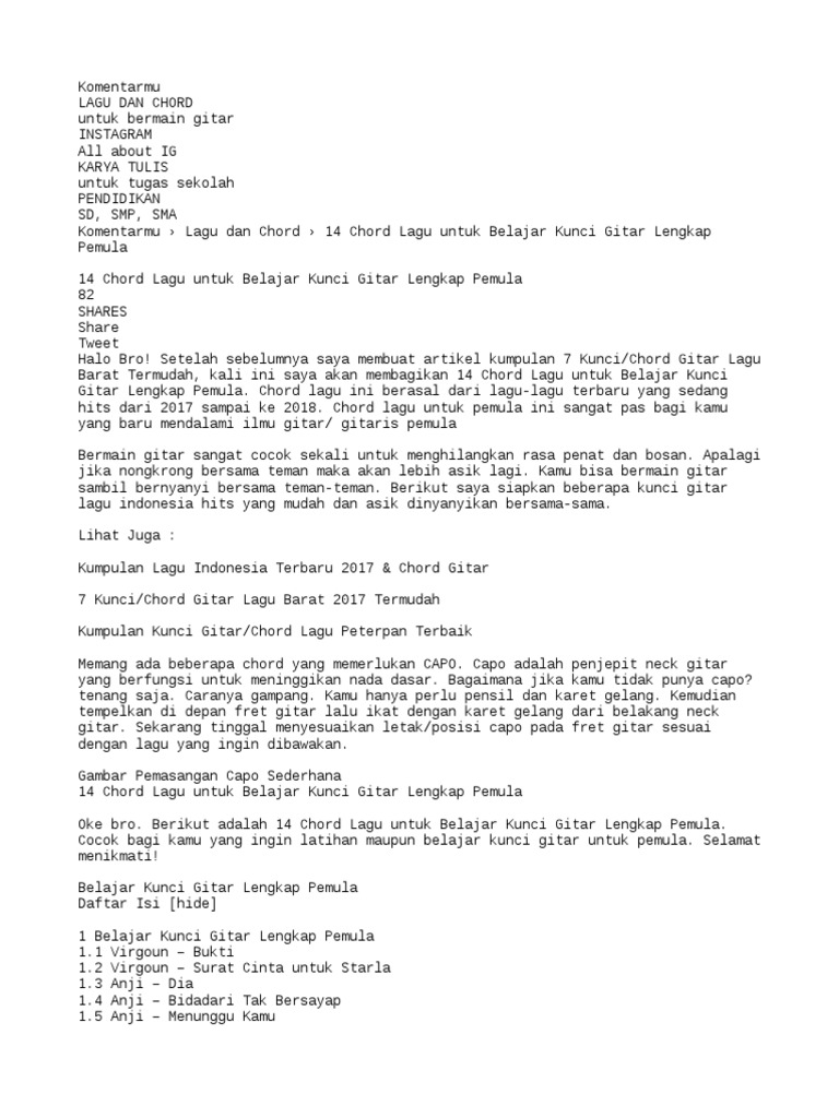 Chord Gitar Semua Tentang Kita Chord Gitar Lagu Lagu Kenangan