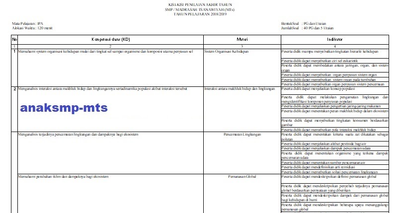 Daftar Ki Dan Kd Ipa Smp Mts Kurikulum 2013 Revisi 2017 2018 Kelas 7 8 Dan 9