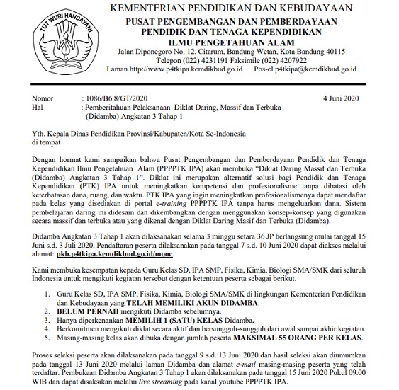 Pembekalan Guru Inti Program Peningkatan Kompetensi Pembelajaran Pkp Jenjang Sd Mapel Ipa Smp Fisika Kimia Dan Biologi Sma