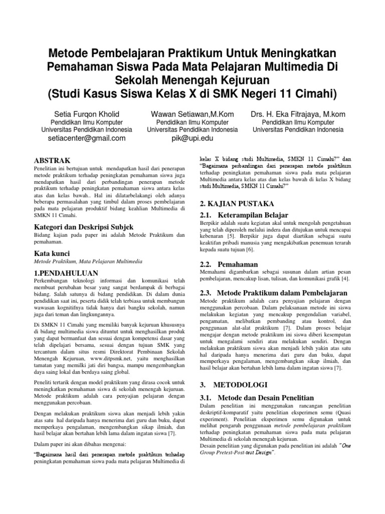 Metode Pembelajaran Praktikum Untuk Meningkatkan Pemahaman Siswa Pada Mata Pelajaran Multimedia Di Sekolah Menengah Kejuruan Setiafurqon Pdf