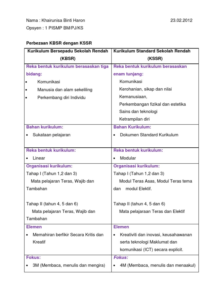 Perbezaan Kbsr N Kssr