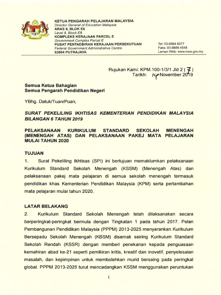 Surat Pekeliling Ikhtisas Bil 2 Tahun 2013 Pelaksanaan Kurikulum Standard Sekolah Rendah Kssr Tahap Ii Secara Berperingkat Peringkat Mulai Tahun 2014 Portal Rasmi Sk Felda Tenggaroh 01