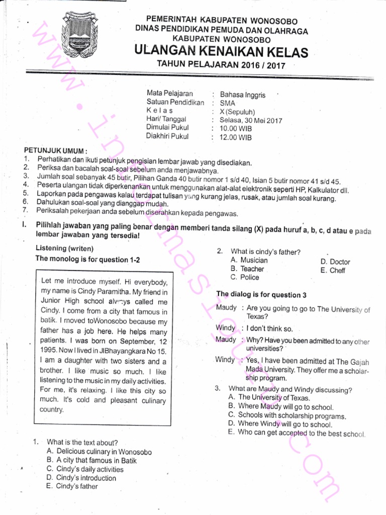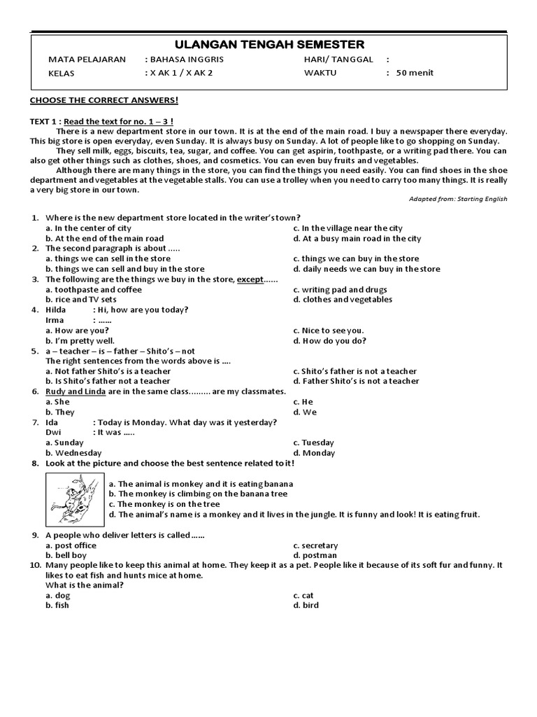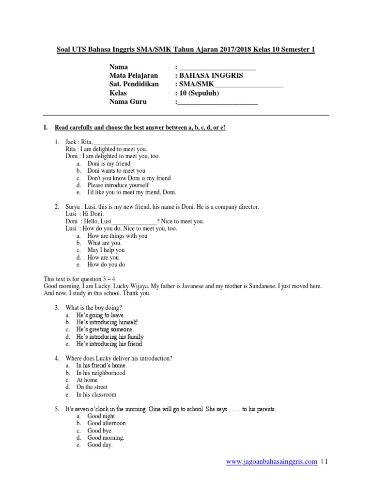 Soal Ulangan Ujian Bahasa Inggris Kelas 10 Semester 1 Uas Bahasa Inggris Kelas 10 Sma Jadwal Pendaftaran Cpns 2018