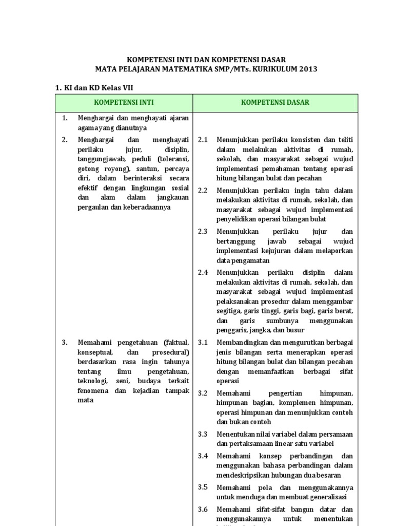 Kementerian Pendidikan Dan Kebu Smp Mtk Kurikulum 2013 Bagi Guru Mata Pelajaran Matematika Smp Pdf Document