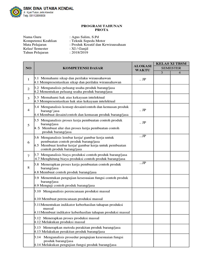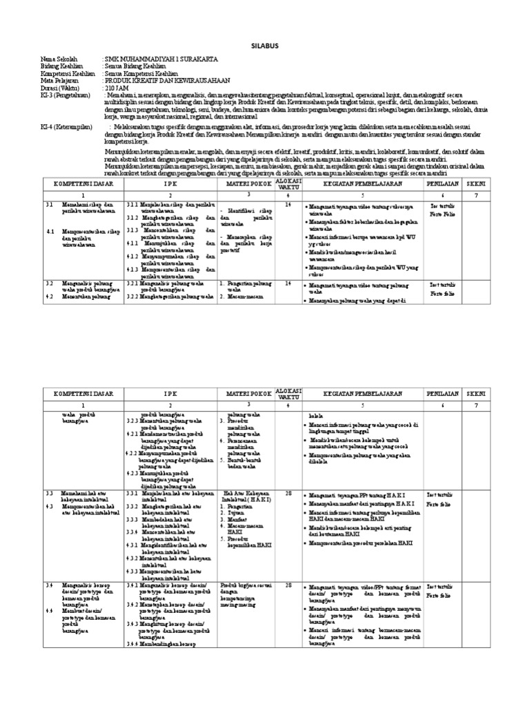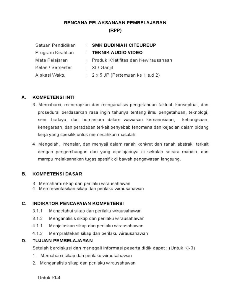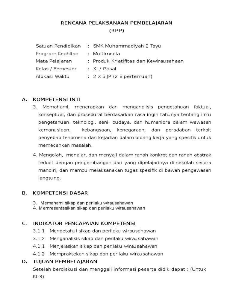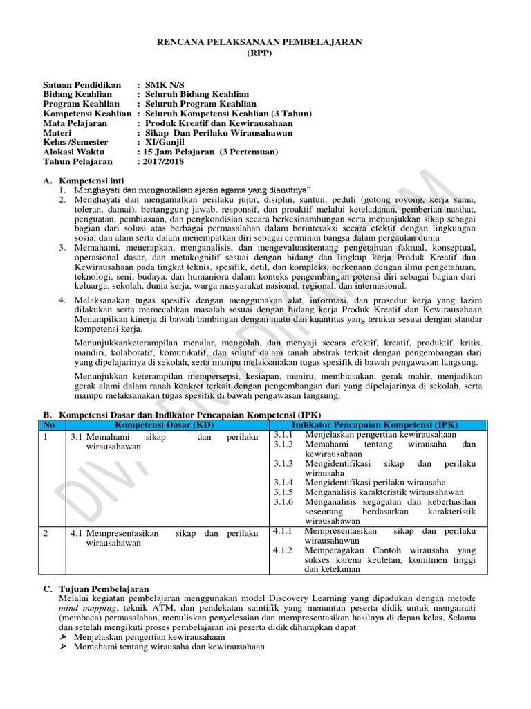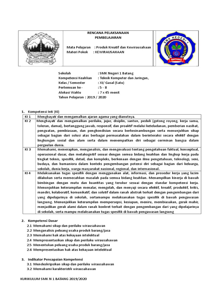 Download Rpp Produk Kreatif Dan Kewirausahaan Kurikulum 2013 Revisi 2017 Kelas Xi Xii Semester Ganjil Genap