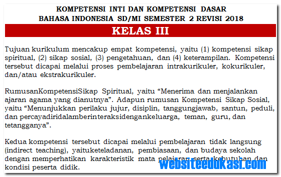 Pemetaan Kd Kelas 3 Kurikulum 2013 Revisi 2018 Sekolahdasar Net