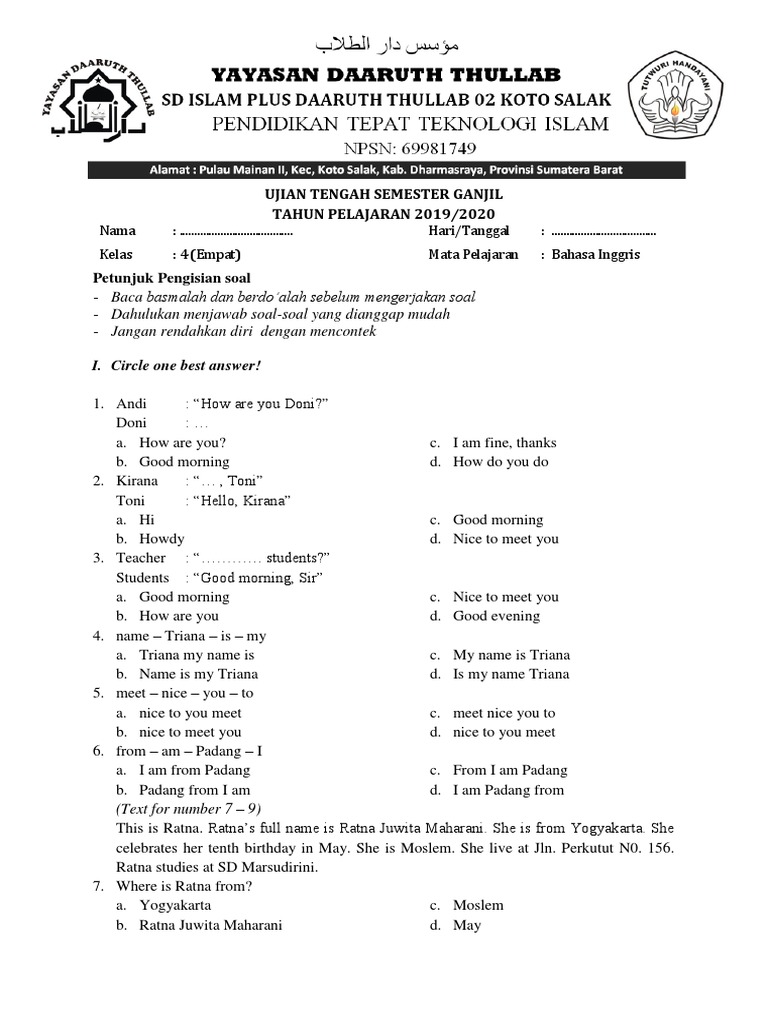 Soal Penilaian Tengah Semester Pts Kelas 4 Tema 7 Indahnya Keragaman Di Negeriku Sanjayaops