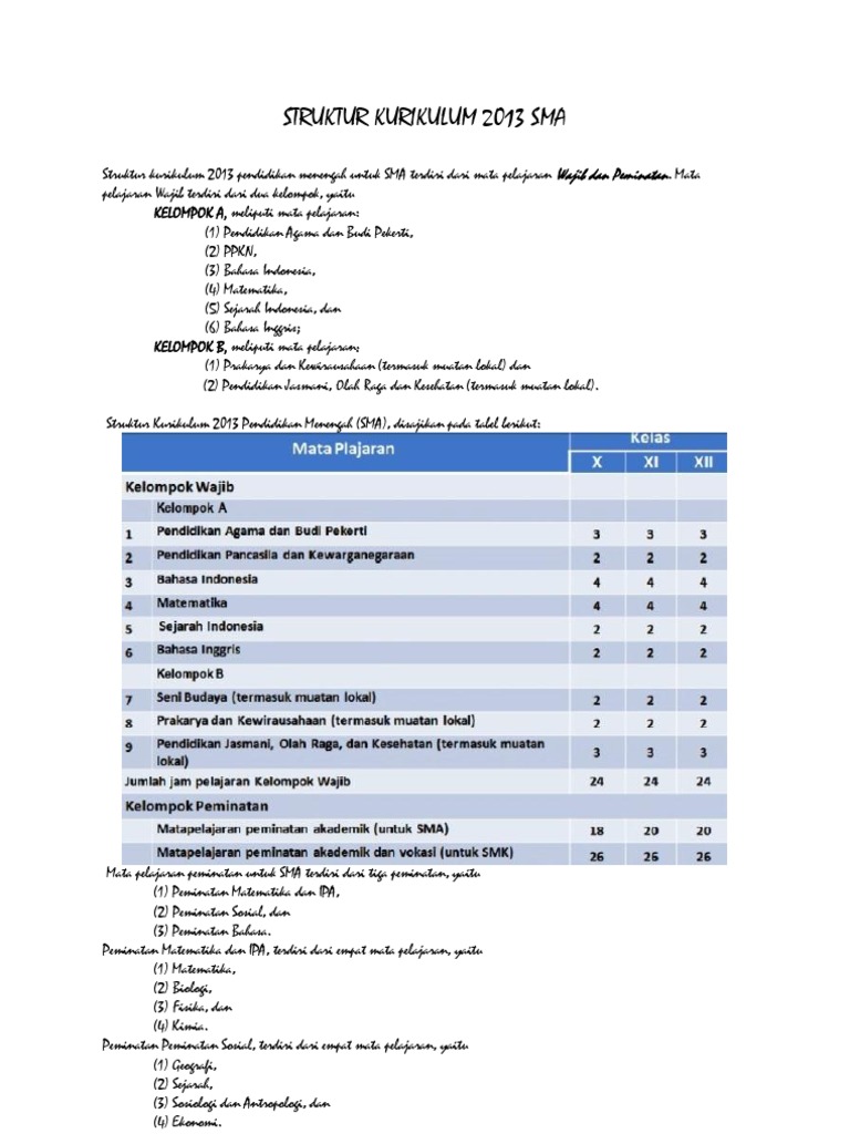 Struktur Kurikulum 2013 Pendidikan Menengah Untuk Sma Terdiri Dari Mata Pelajaran Wajib Dan Peminatan