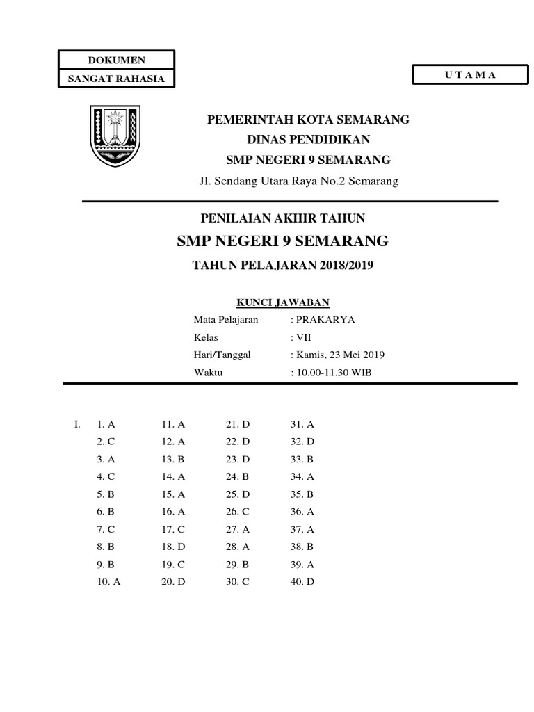 Soal Dan Kunci Jawaban Pat Matematika Smp Kelas 7 Kurikulum 2013 Tahun Pelajaran 2018 2019 Didno76 Com