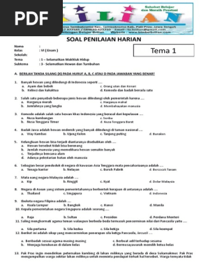 Soal Ulangan Harian Tema 1 Subtema 2 Kelas 6 Kurikulum 2013 Edisi Revisi 2018 Riyanpedia