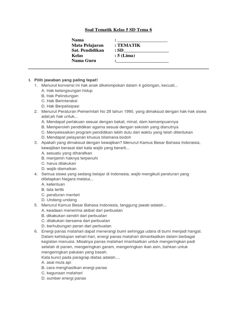 Jurnal Pembelajaran Tematik Kelas 5 Semester 1 Sd Mi Kurikulum 2013 Tahun Pelajaran 2020 2021 Datadikdasmen
