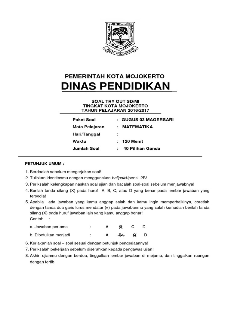Kumpulan Artikel Bermanfaat Dan Ilmu Pengetahuan Soal Try Out Ii Usbn Sd Matematika Dan Kunci Jawabannya