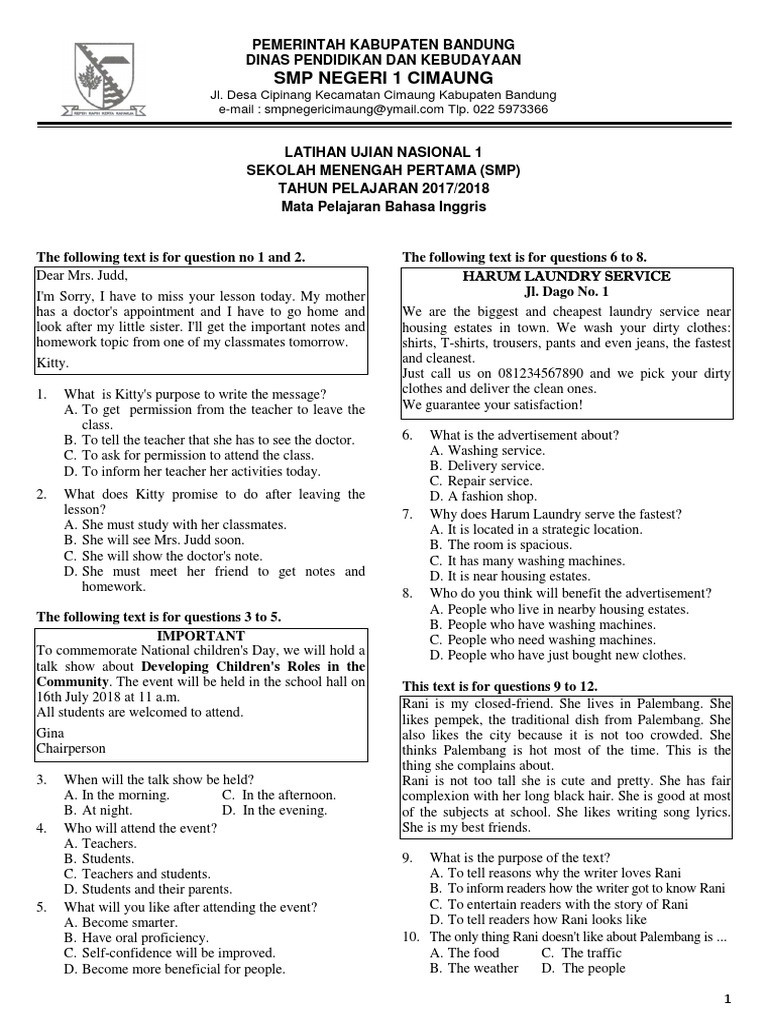 Latihan Soal Un Smp Mts 2016 Http Www Pendidikann Info 2016 01 Latihan Soal Un Smpmts 2016 Html Latihan Smp Pendidikan