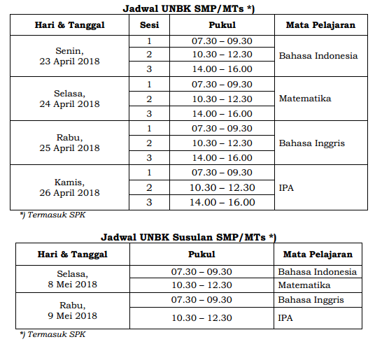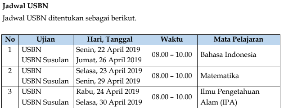 Jadwal Usbn Smp Mts Smptk 2019 Tahun Pelajaran 2018 2019 Utama Dan Susulan Beserta Mata Pelajaran Yang Diujikan Jumlah Soal Dan Alokasi Waktunya Website Pendidikan