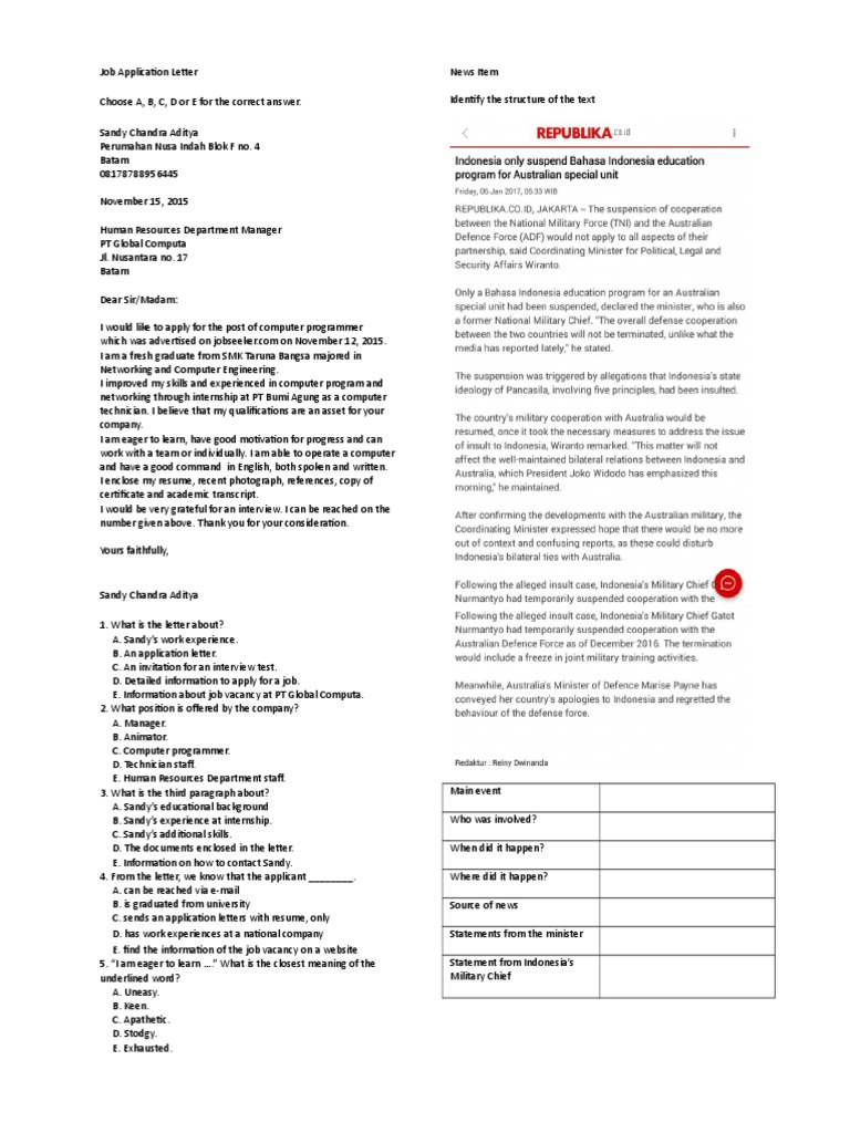 49 Contoh Soal Application Letter Dan Jawabannya English Admin