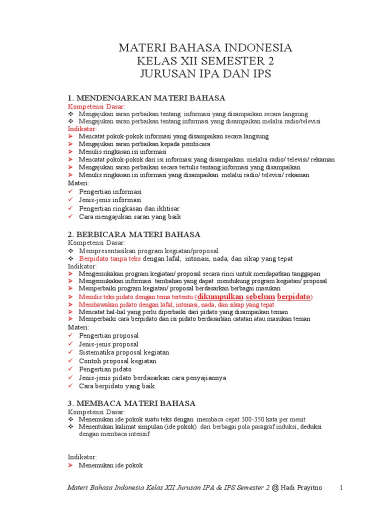 Ringkasan Materi Pembelajaran Bahasa Indonesia Kelas Xii Kurikulum 2013 Untuk Persiapan Penilaian Akhir Semester 1 Tahun Pelajaran 2018 2019 Zuhri Indonesia