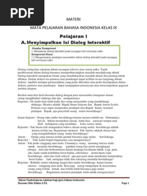 Materi Bahasa Indonesia Kelas 9 Smp Mts Kurikulum 2013 Edisi Revisi 2018