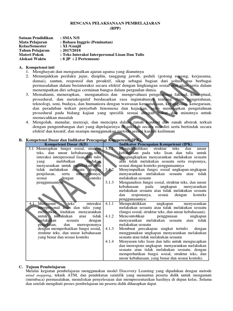 Download Rpp Bahasa Inggris Sma Smk Kelas 11 Kurikulum 2013 Revisi 2017 Dicariguru Com