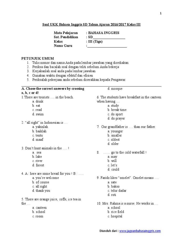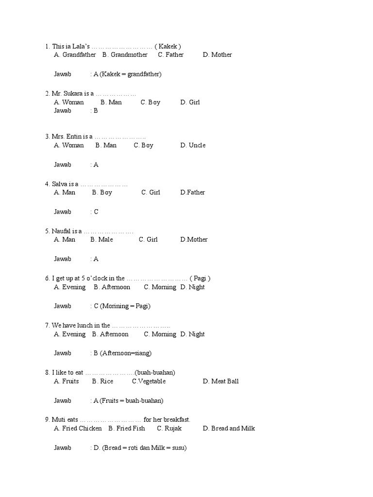 100 Soal Latihan Bahasa Inggris Sd Kelas 5 Lengkap Dengan Kunci Jawaban Belajar Bahasa Inggris Online Gratis
