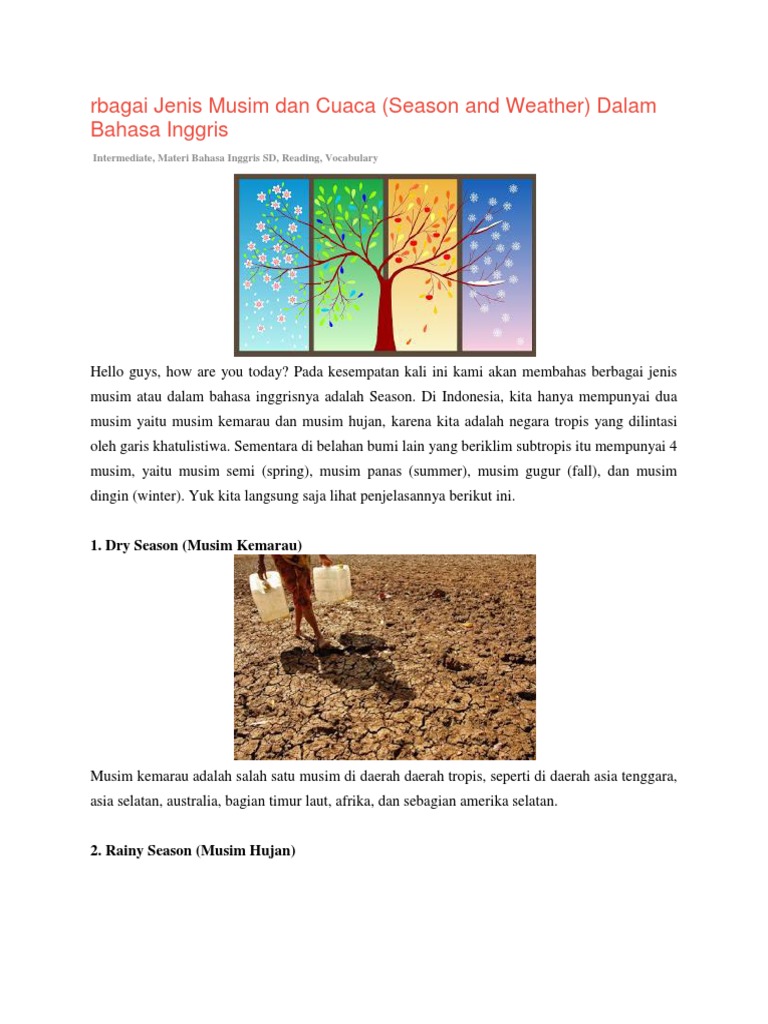 Berbagai Jenis Musim Dan Cuaca Season And Weather Dalam Bahasa Inggris Jagoan Bahasa Inggris