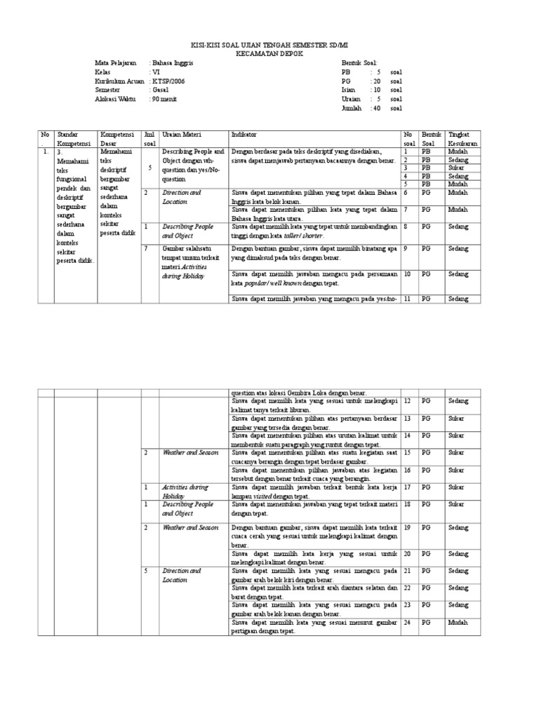 Soal Uas Bahasa Inggris Kelas 6 Semester 1 Terbaru Tahun Ajaran 2018 2019 Juragan Les