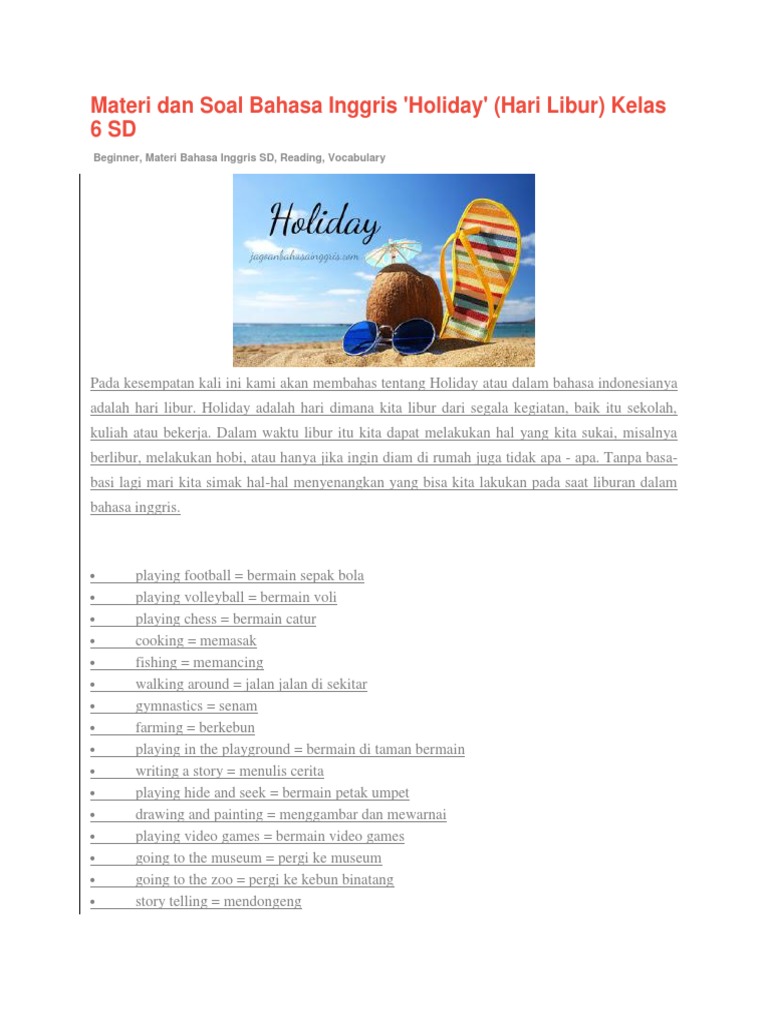 Materi kelas 6selamat datang para pendidik misd khususnya di mi nw no. Materi bahasa inggris tentang holiday hari libur kelas 6 misd tp. I borotumbuh semoga tetap ikhlas dan sehat dalam mengajar.