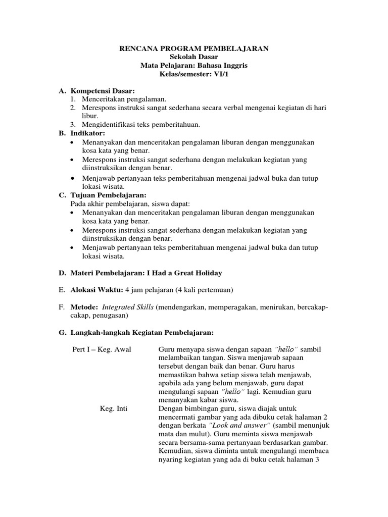 Berikut ini adalah download rpp dan silabus ktsp terbaru kelas 1 6 sd yang merupakan kumpulan file dari berbagi sumber downloadinfo guruperangkat pembelajaranrpp tentang soal bahasa inggris kelas 6 sd tentang holiday. Materi dan soal bahasa inggris holiday hari libur kelas 6 sd materi kelas 6selamat datang para pendidik misd khususnya di mi nw no. Monday 9 april 2018.