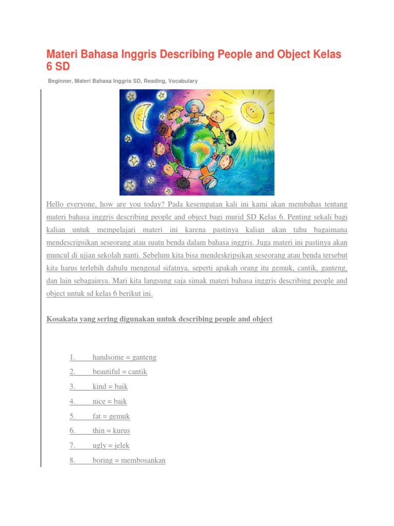 Materi Pelajaran Bahasa Inggris Kelas 6 Sd Belajar Bahasa Inggris Online Gratis