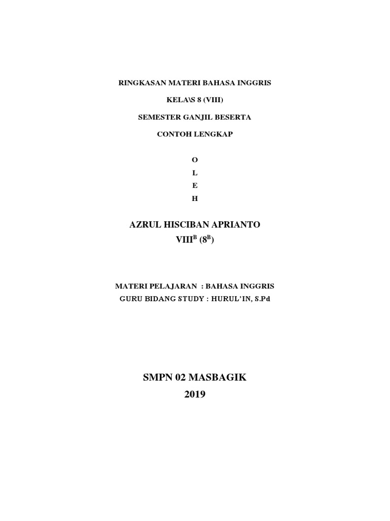 Materi Lengkap Mata Pelajaran Bahasa Inggris Untuk Sekolah Menengah Pertama Smp Necerz Com