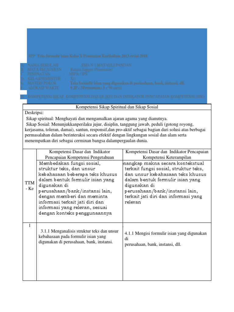 06 Silabus Bing Sma X Peminatan Doc Silabus Sma Mata Pelajaran Bahasa Inggris Peminatan Kelas X Kompetensi Inti Ki 1 Menghayati Dan Mengamalkan Course Hero