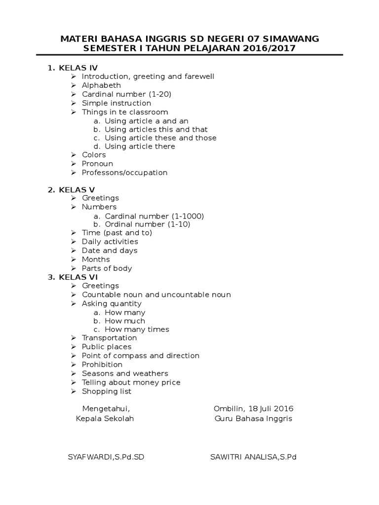 Materi Bahasa Inggris Kelas 3 Sd Semester 1 Dan 2 Sesuai Silabus Operator Sekolah