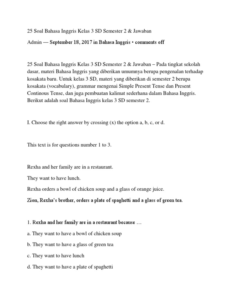 Download Soal Ujian Tengah Semester Ganjil Uts 1 Bahasa Inggris Kelas 1 Tahun 2017 2018 Rief Awa Blog Bahasa Inggris Matematika Kelas 5 Matematika Kelas 4