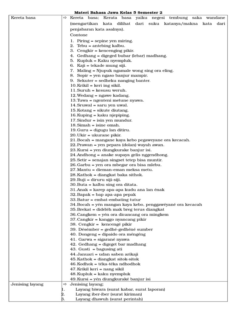 Lengkap 40 Contoh Soal Uas Bahasa Jawa Kelas 5 Sd Mi Dan Kunci Jawabnya Terbaru Bospedia