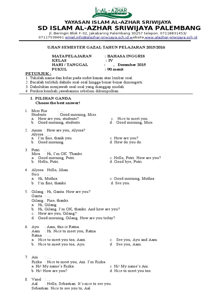 Contoh Soal Uts Semester Ganjil Bahasa Inggris Sd Kelas 4 Belajar Bahasa Inggris Online Gratis