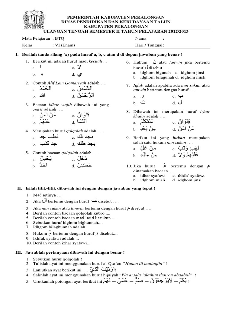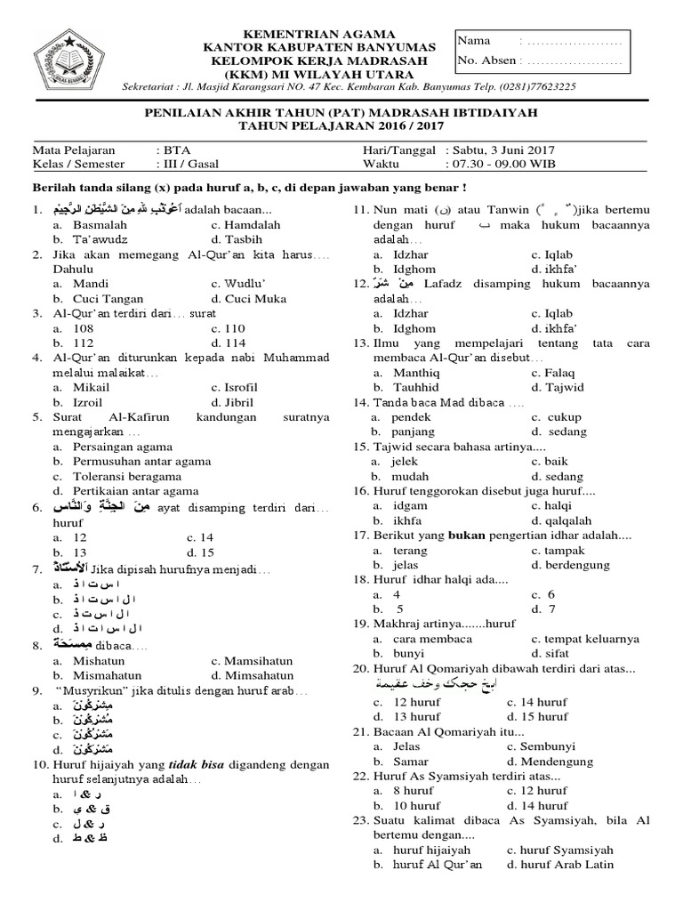 Soal Kelas 3 Sd Semester Genap Mata Pelajaran Aqidah Budbahasa Dan Jawaban Idn Paperplane