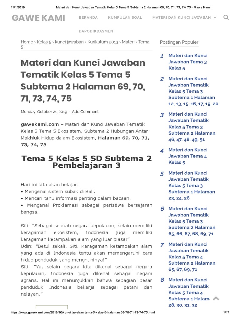 Materi Dan Kunci Jawaban Tematik Kelas 5 Tema 3 Subtema 1 Halaman 35 36 38 39 Gawe Kami