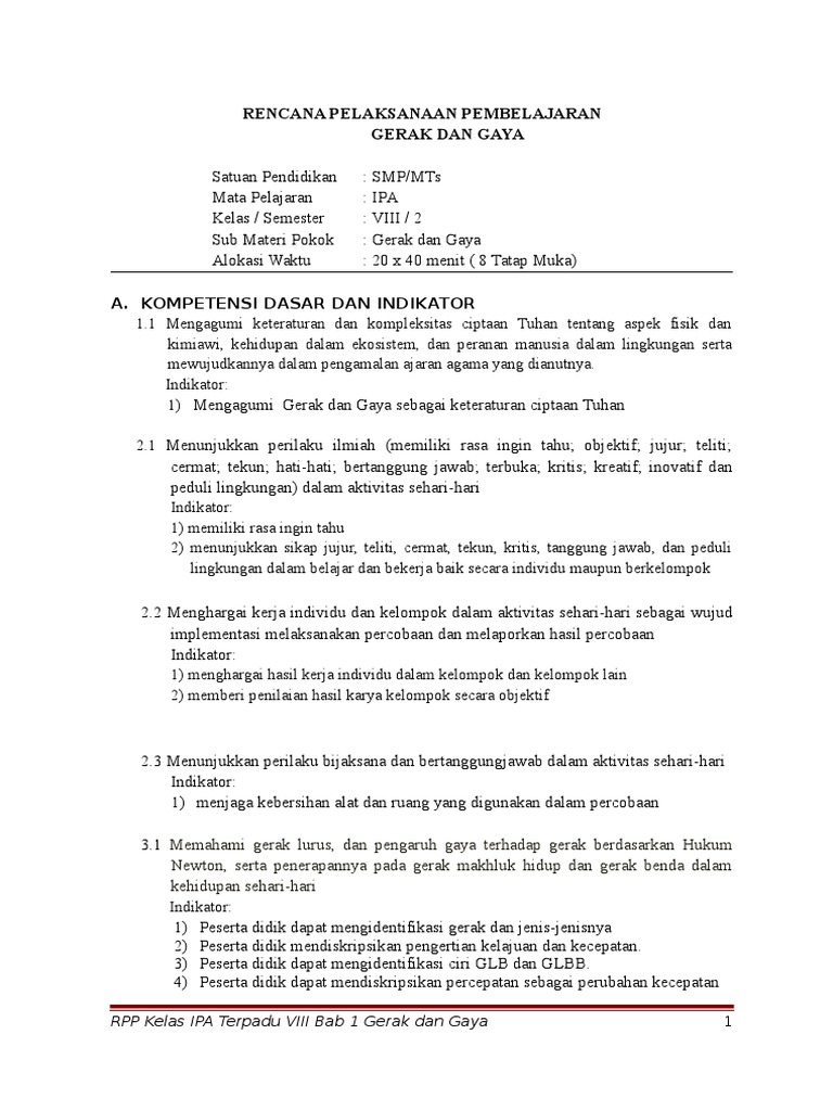 Rpp Ipa Kelas 8 K13 Revisi 2017 Semester 1 Gerak Dan Gaya Www Downloadadministrasisekolah Com