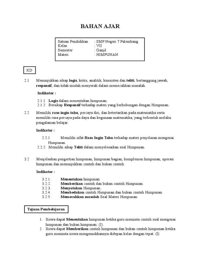 Kompetensi dasar melalui proses pembelajaran himpunan siswa mampu. Semoga bermanfaat dengan sering latihan soal matematika ini akan menjadikan para siswa. Contoh format administrasi guru lengkap.
