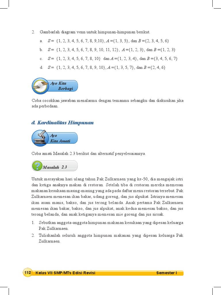 Oleh admin diposting pada 31 agustus 2017 31 agustus 2017. Menunjukkan sikap logis kritis analitik konsisten dan teliti bertanggung jawab responsif dan tidak mudah menyerah dalam memecahkan masalah. Himpunan kelas vii smp kurikulum 2013 1.