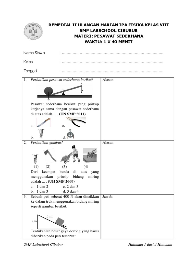 20 Soal Pesawat Sederhana Pilihan Ganda Dan Jawaban Pembahasan