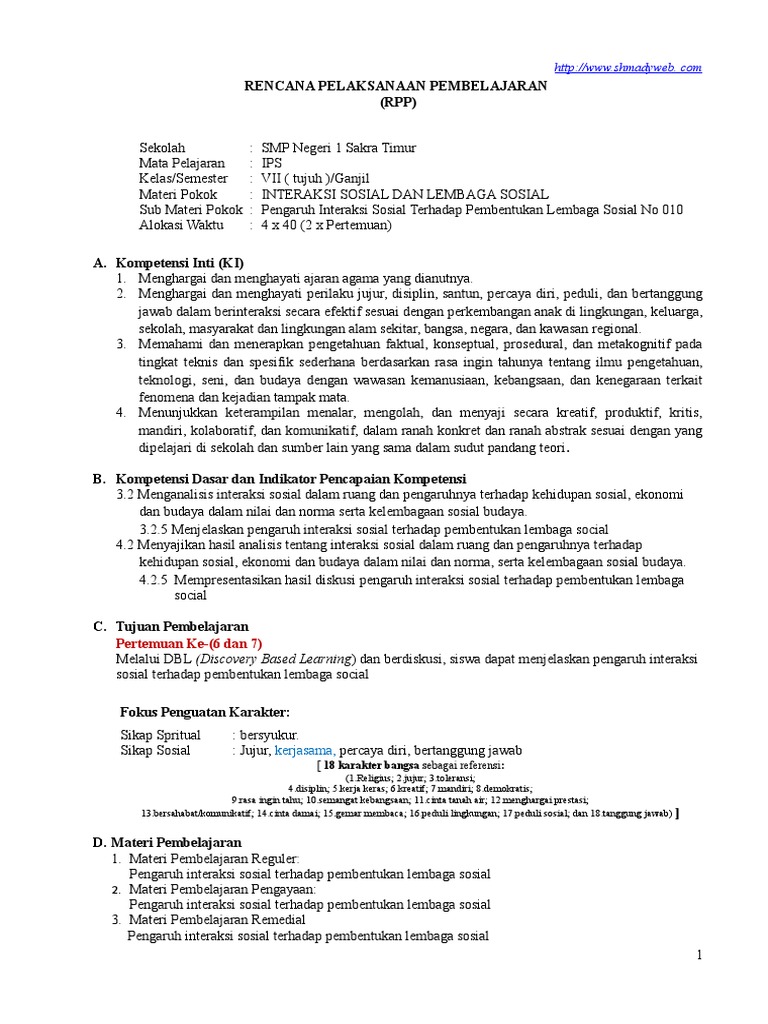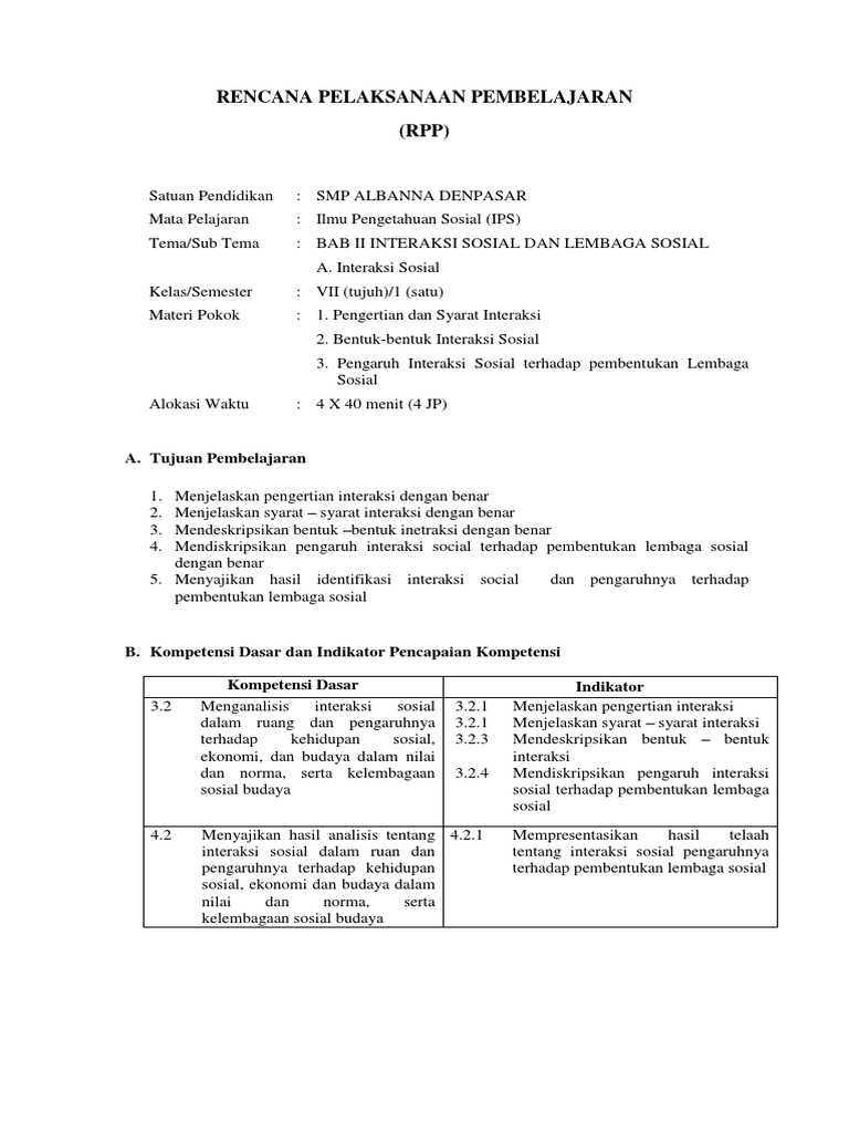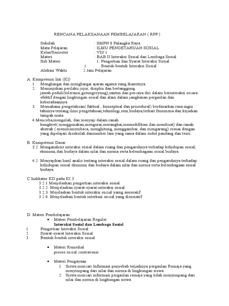 8 Bab 8 Pengaruh Interaksi Sosial Docx Rencana Pelaksanaan Pembelajaran Rpp Satuan Pendidikan Mata Pelajaran Kelas Semester Materi Pokok Alokasi Course Hero