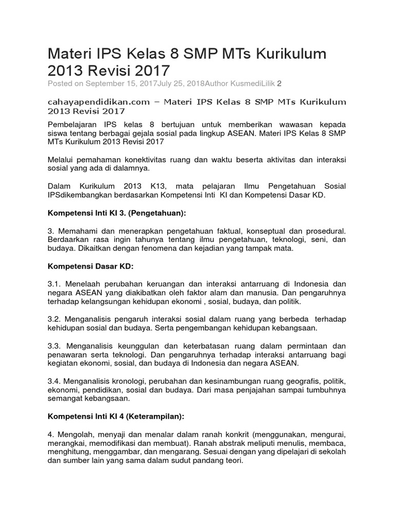 Kisi Kisi Pat Smp Kelas 8 Semua Mata Pelajaran Kurikulum 2013 Tahun Pelajaran 2018 2019 Mgmp Ips Indramayu