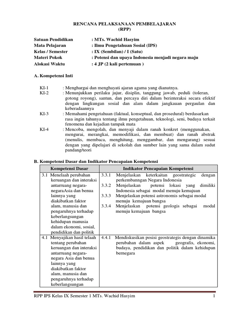 Rpp 1 Lembar Ips Kelas 9 Smp Berdasarkan Edaran Mendikbud Nomor 14 Tahun 2019 Info Pendidikan Terbaru