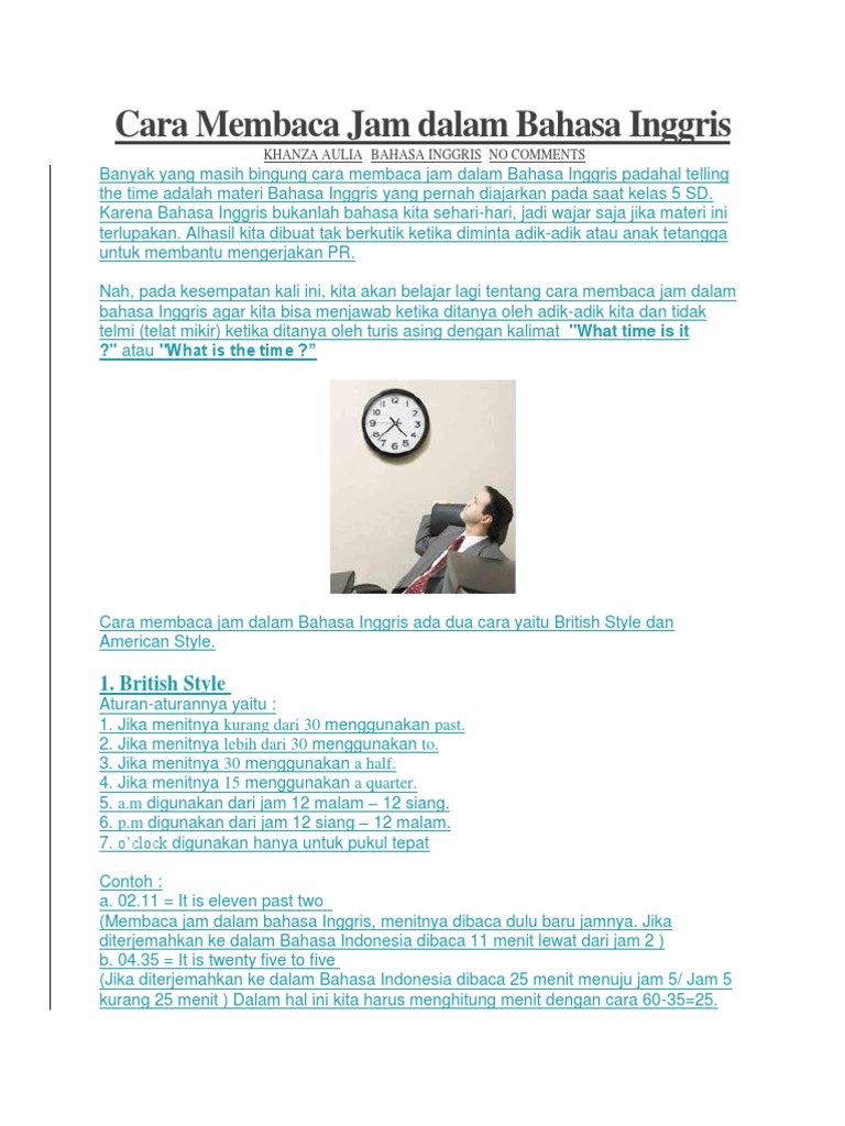Cara Membaca Jam Dalam Bahasa Inggris Juragan Les
