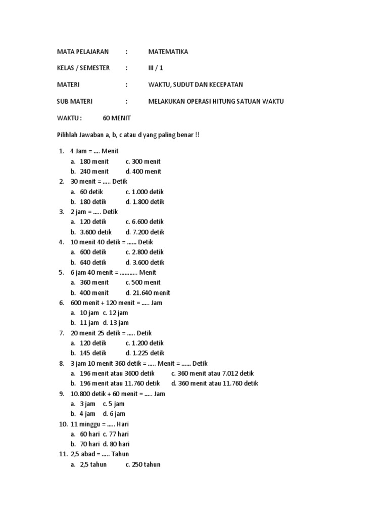 Soal Matematika Kelas 1 Sd Bab 3 Pengukuran Waktu Dan Panjang Www Bimbelbrilian Com Proprofs Quiz