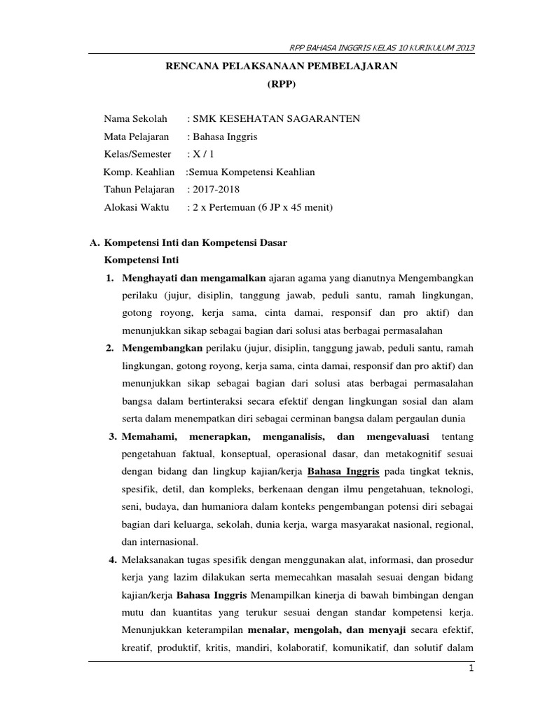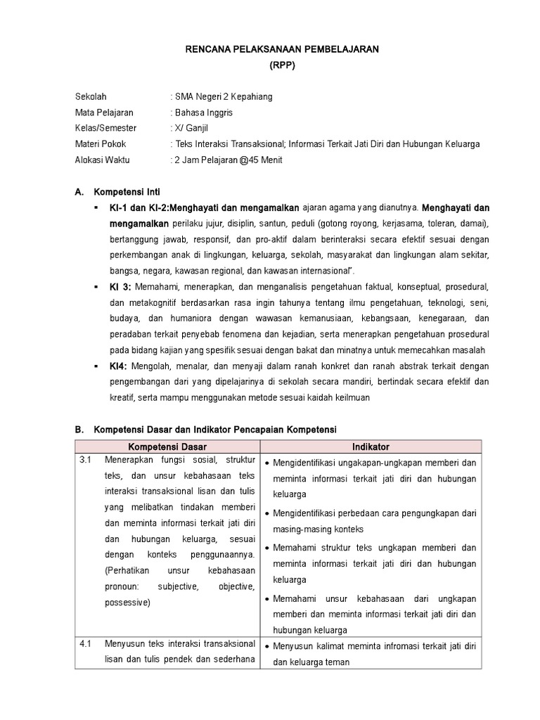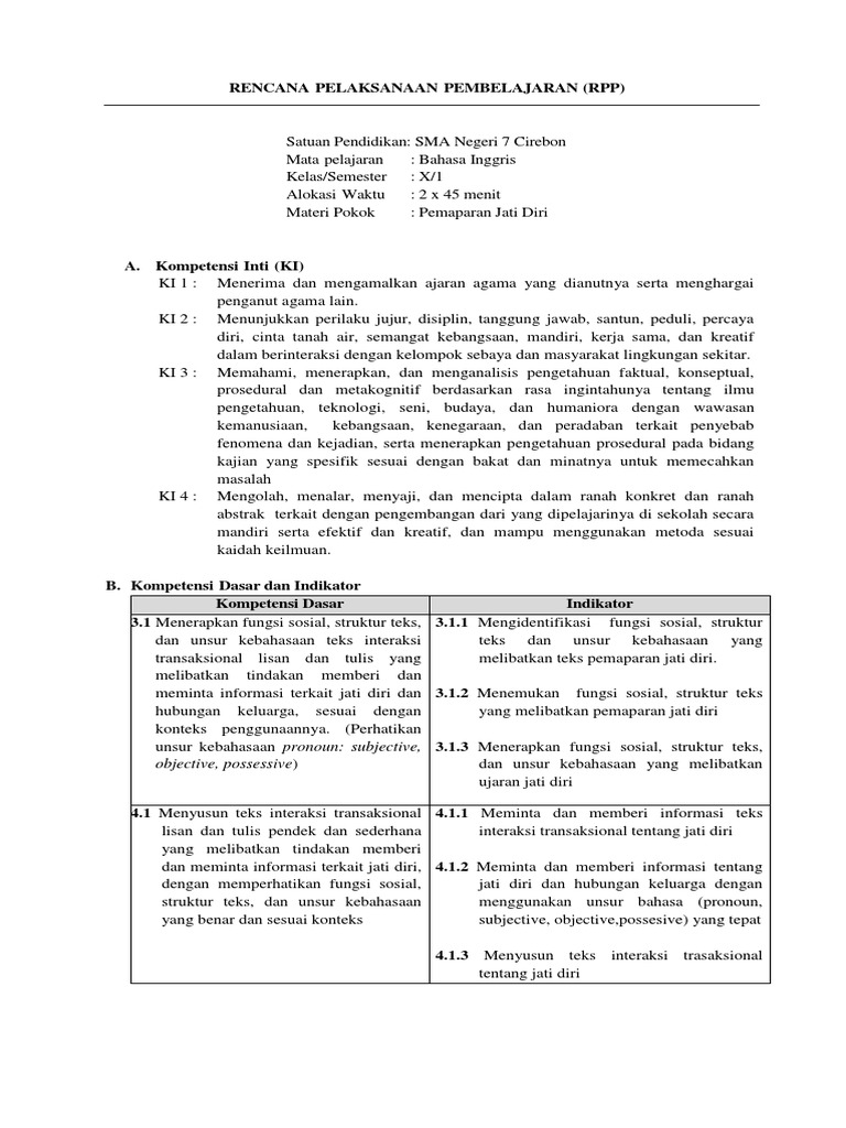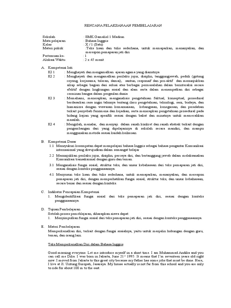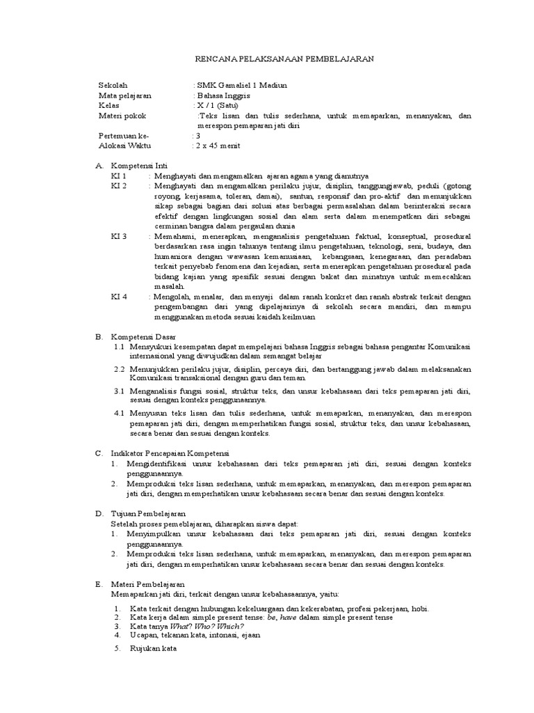 Contoh Rpp Bahasa Inggris Smp Kurikulum 2013 Tentang Jati Diri Bukuinggris Co Id